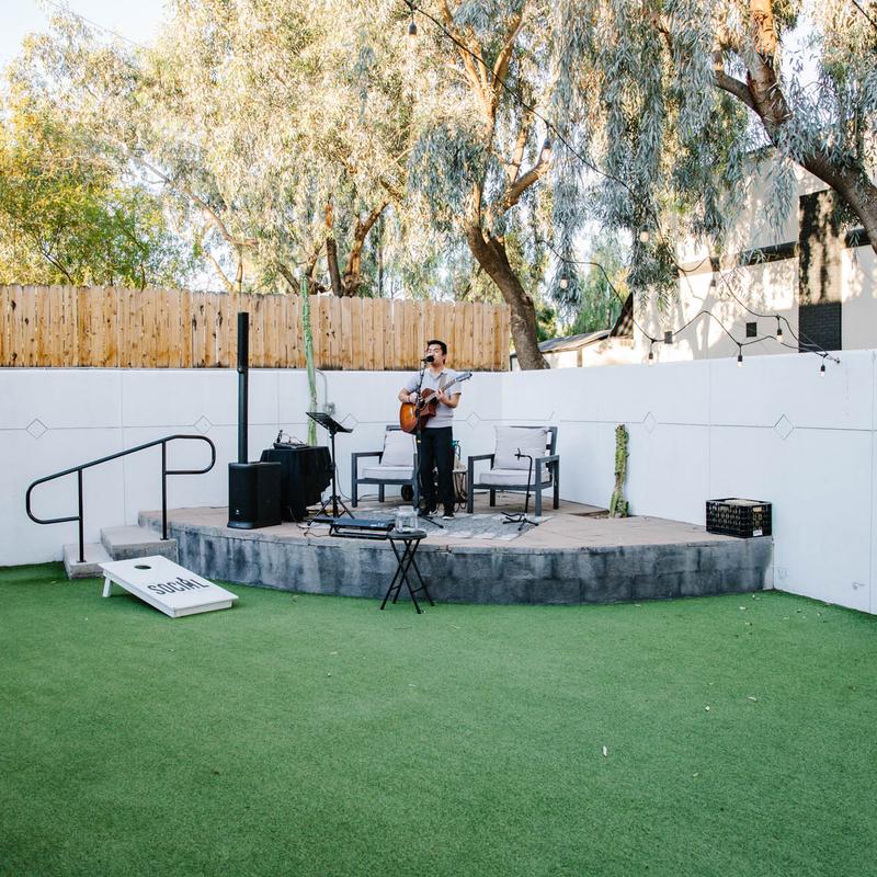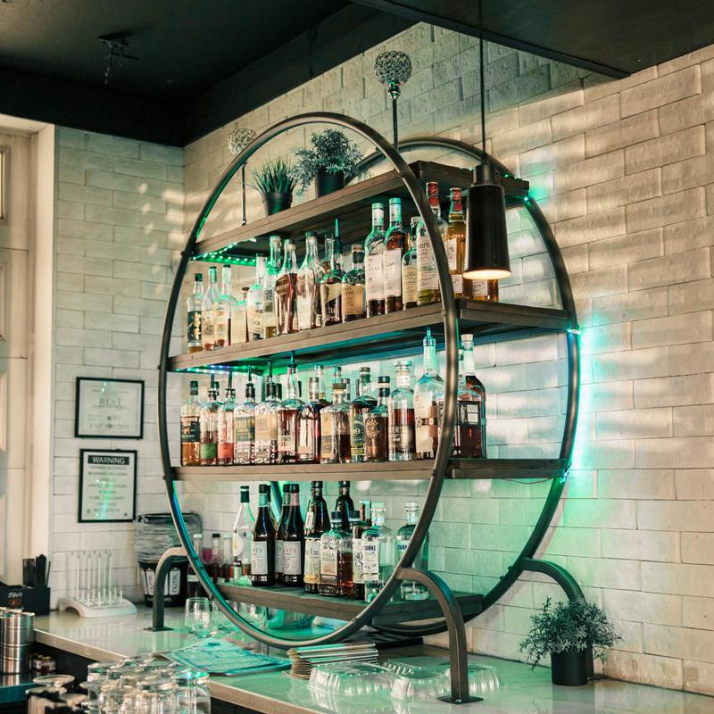Fun, attractive place with great food and service, friendly staff, and terrific music (not overwhelmingly loud). Lots of seating choice - tables, padded booths, bar, etc. Plenty of parking. Great spot for weekday late lunch. This place is way more than a cocktail bar.